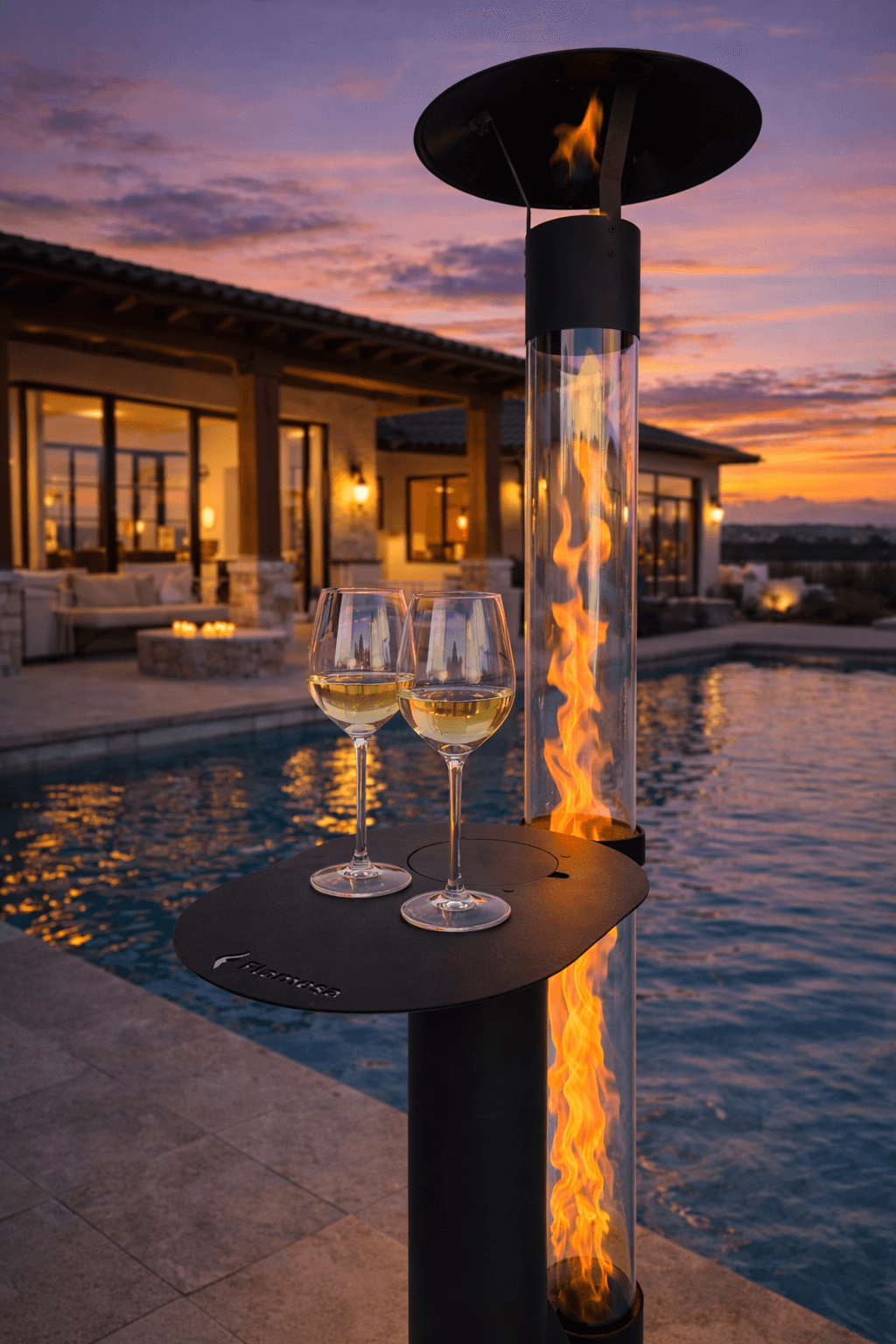 Flamesa® Lumina – Estufa de pellets de diseño para exteriores con mesa